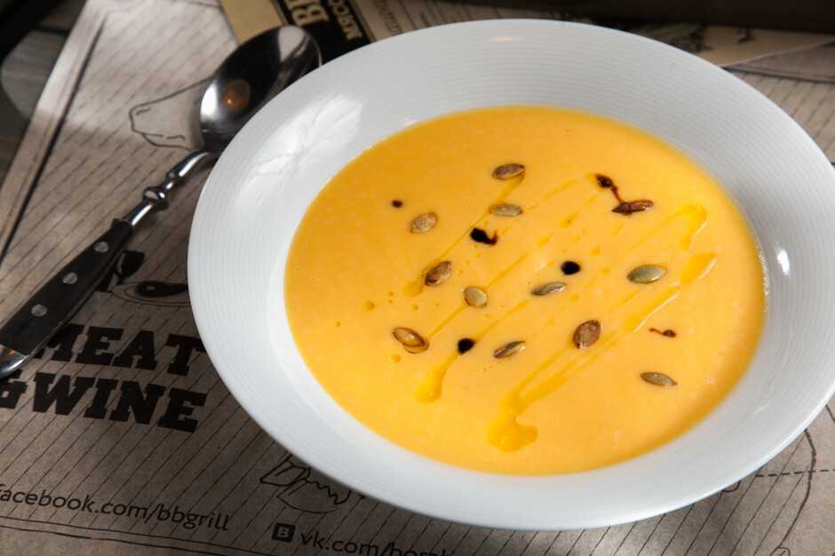 - Обедаем овощным супом, куриной грудкой и тушеной тыквой;
