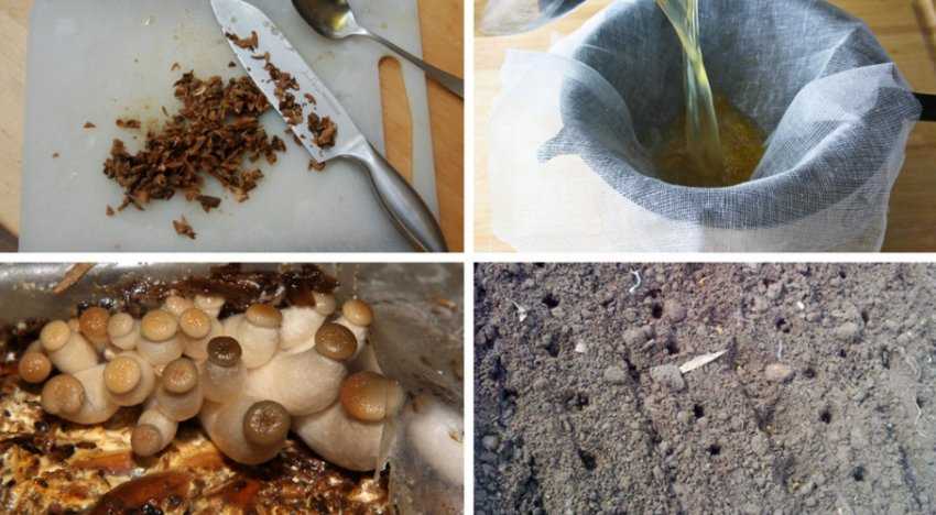 - Боровики необходимо измельчить, оставить в воде более чем на сутки, перемешать, и отцедить. Настой содержит споры белых грибов. Жидкость необходимо равномерно распределить под растениями.