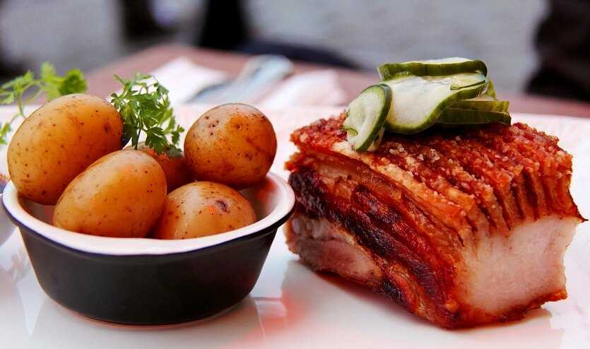 Дания славится блюдами из свинины, поэтому из мяса нужно первым делом пробовать именно их. Король национальной кухни – кусок запеченной или жареной свиной грудки «с хрустом». Крупная соль, немного перца, розмарин – ничего лишнего. Это любимое блюдо датчан на Рождество. Свинину с хрустящей корочкой подают с карамелизированной картошкой, красной капустой, хрустящим огурчиком. Обязательно с соусом: брусничным или белым, сметано-укропным. Если закажете не flæskesteg, а stegt flæsk, вам принесут то же самое, но уже порезанным на тонкие ломтики. Запивайте датским пивом, так еще вкуснее.