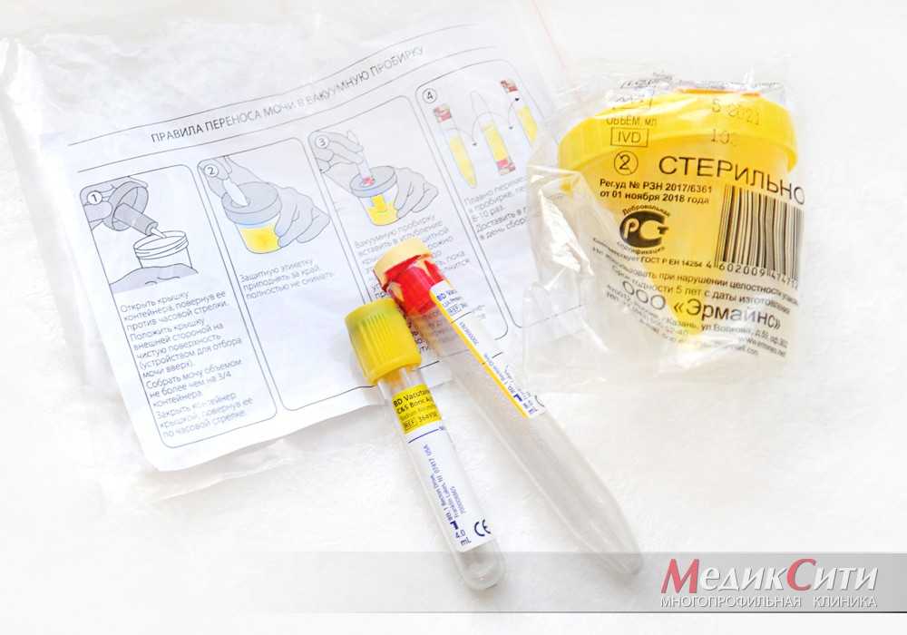 В день анализа: пациент собирает утреннюю мочу, накопленную в мочевом пузыре за ночь. До мочеиспускания необходимо осуществить тщательную гигиену наружных половых органов. Биоматериал собирается в одноразовый контейнер (продается в аптеках). Собрать необходимо среднюю порцию мочи, слив первую порцию. Собранную мочу нужно в течение 1-2 часов сдать в лабораторию — позднее биоматериал может стать непригодным для исследования.