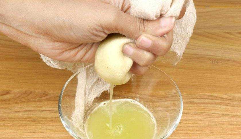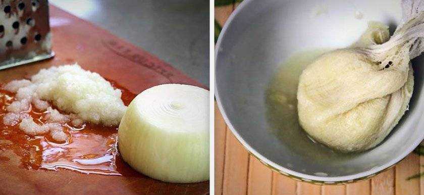 - Выжимают фреш из одной луковицы и четырех чесночных зубчиков.