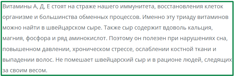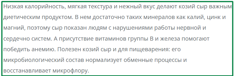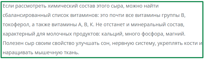 Пищевая ценность сыров обусловлена наличием в нем комплекса веществ, определяющих его калорийность, биологическую ценность.