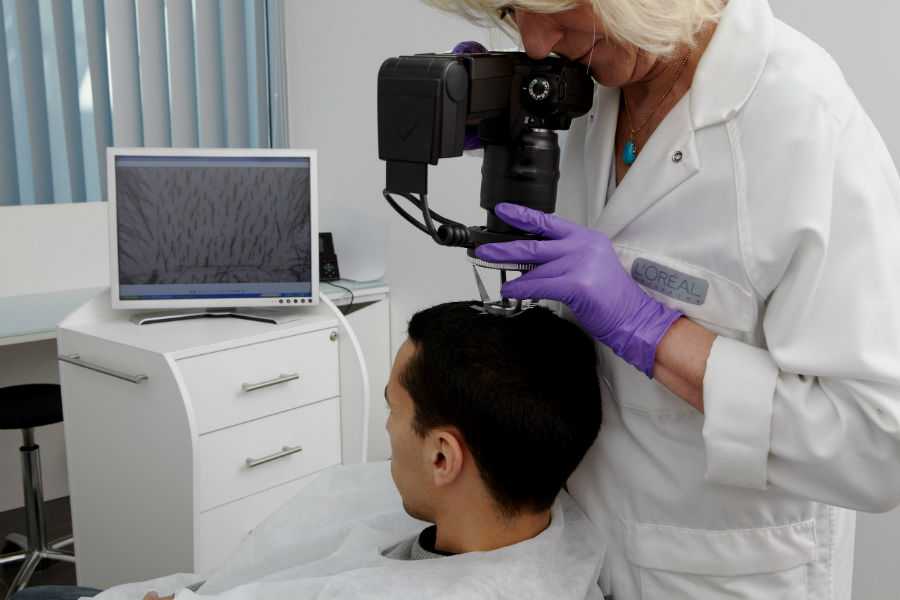 Проводит трихоскопию врач трихолог, реже дерматолог. Исследование проводится при помощи специального прибора – трихоскопа. Это оборудование не травмирует ткани и волосяной стержень. При этом специалист может получить многократно увеличенное изображение пораженного участка волосистой части головы.