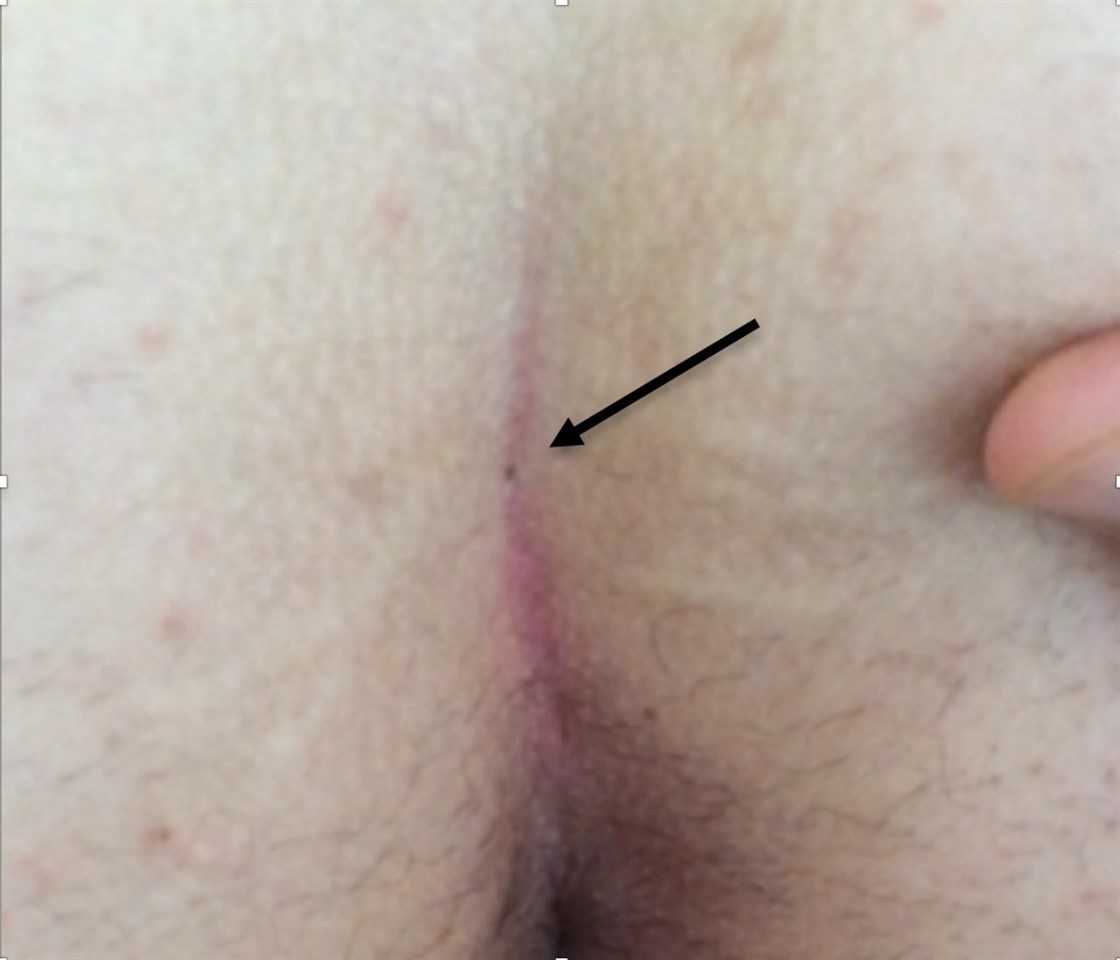 - гнойник самостоятельно спонтанно дренируется в имеющийся свищевой ход, что проявляется истечением гноя в области межъягодичной складки. При этом болезненные ощущения и температура тела постепенно снижаются и пациент может расценить это, как излечение, и в дальнейшем не обратиться к врачу;