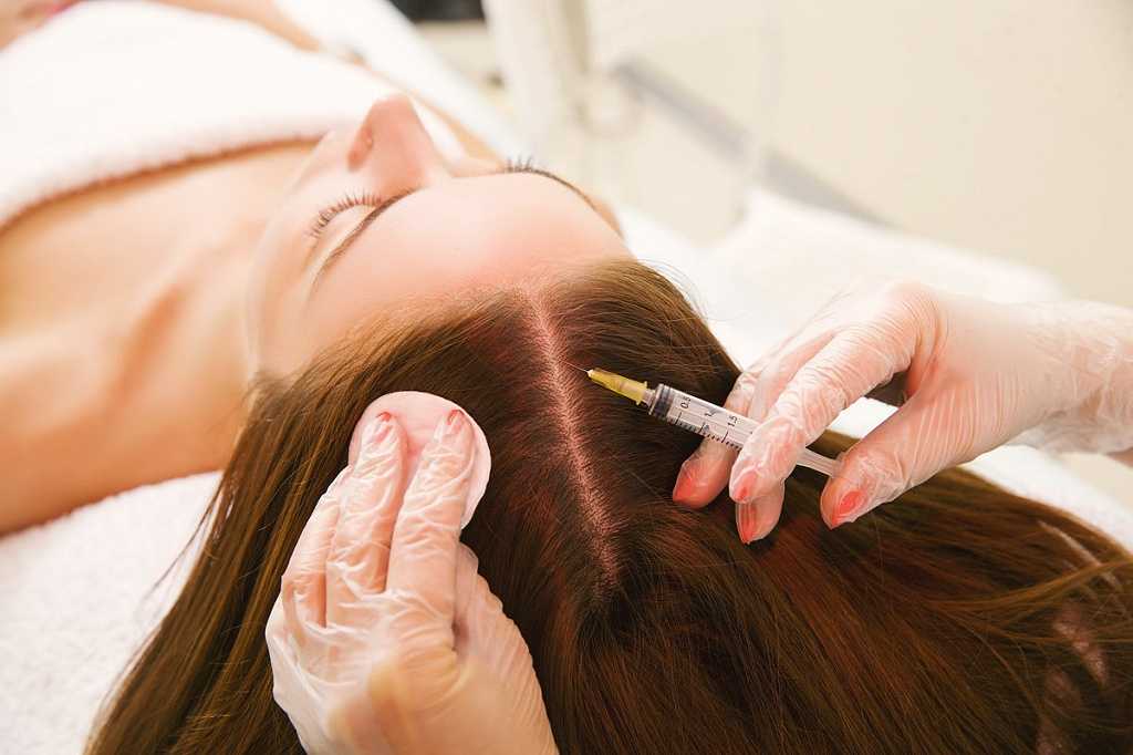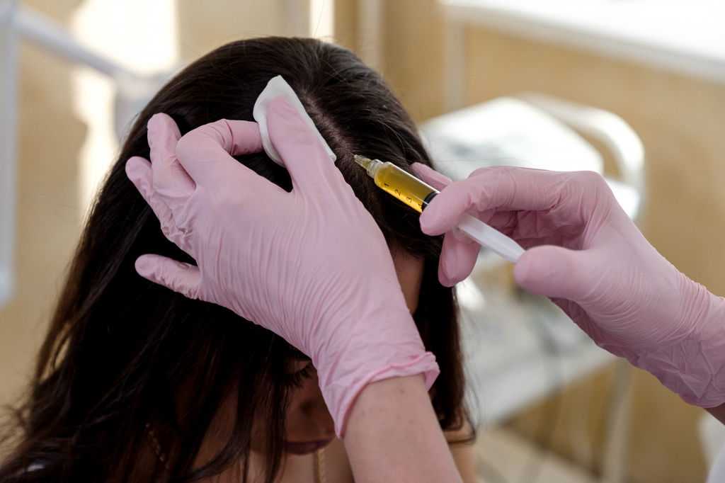 - Введение плазмы в кожу головы на глубину 1 мм. Перед инъекциями специалист обрабатывает выбранную для плазмолифтинга зону антисептиком для защиты от заражения. Несколько более глубоких уколов ставят в макушечную зону. В этой зоне запасаются питательные вещества. Всего за сеанс делают в среднем 60 уколов. Сеанс продолжается около часа.