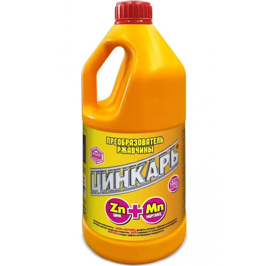 Кроме флюса для удаления ржавчины применяются составы, которые изготавливаются на базе ортофосфорной кислоты. В таких средствах снижено содержание гидроксида, вводятся специальные добавки для корректировки свойств конечного продукта и консистенции, стабилизаторы (например, соли цинка, марганец). Это могут жидкости, гели и вязкие пасты. Большим спросом пользуется серия препаратов «Цинкарь». После них не обязательно грунтовать поверхность перед окрашиванием.