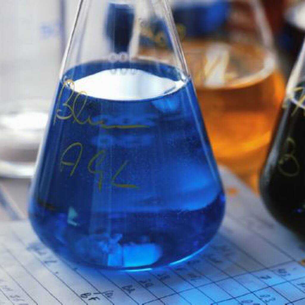 Очень сложно растворить добавку в обыкновенной воде, как результат получается раствор голубого либо синего цвета.