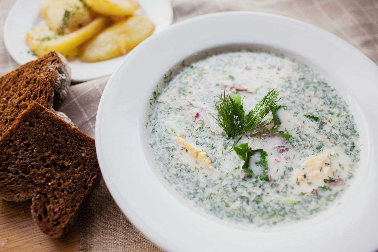 Разбавить кефир прохладной кипяченой водой. Мелко нарезать овощи, яйца и зеленый лук, и залить кефиром. Посолить и перемешать. Добавить отруби и еще раз перемешать. После чего получившееся блюдо можно разливать по тарелкам. По желанию добавляется сметана, половина вареного яйца, мелко рубленная зелень.
